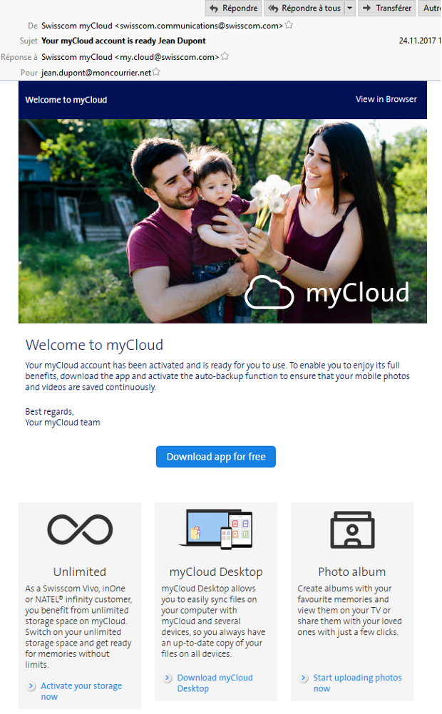 Examinez le message ci-dessous et clickez sur le bouton correspondant à votre évaluation. N'hésitez pas à balayer le message à l'aide de votre souris pour révéler l'adresse des liens.